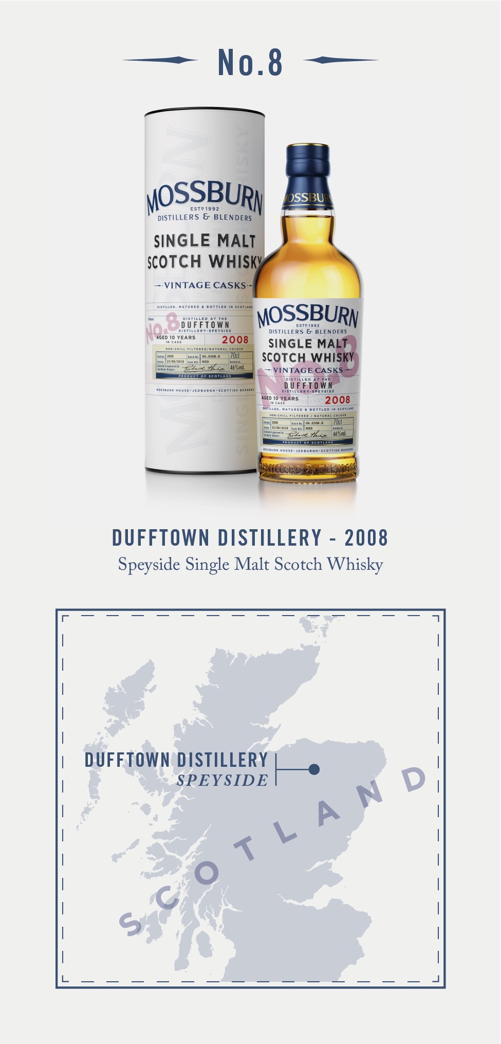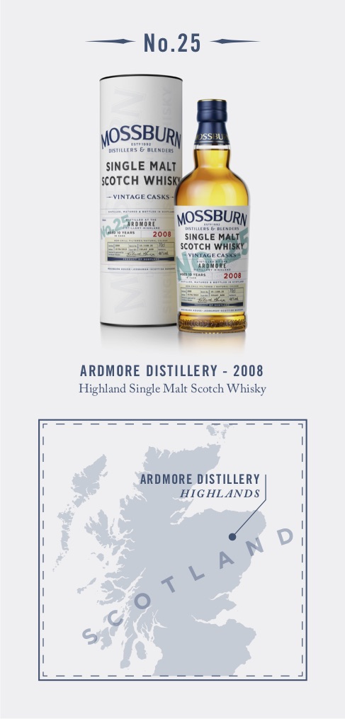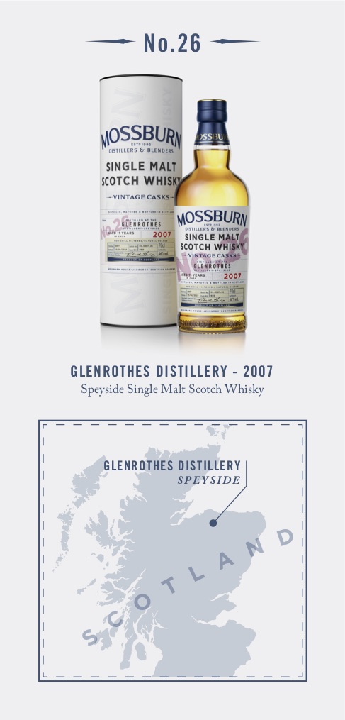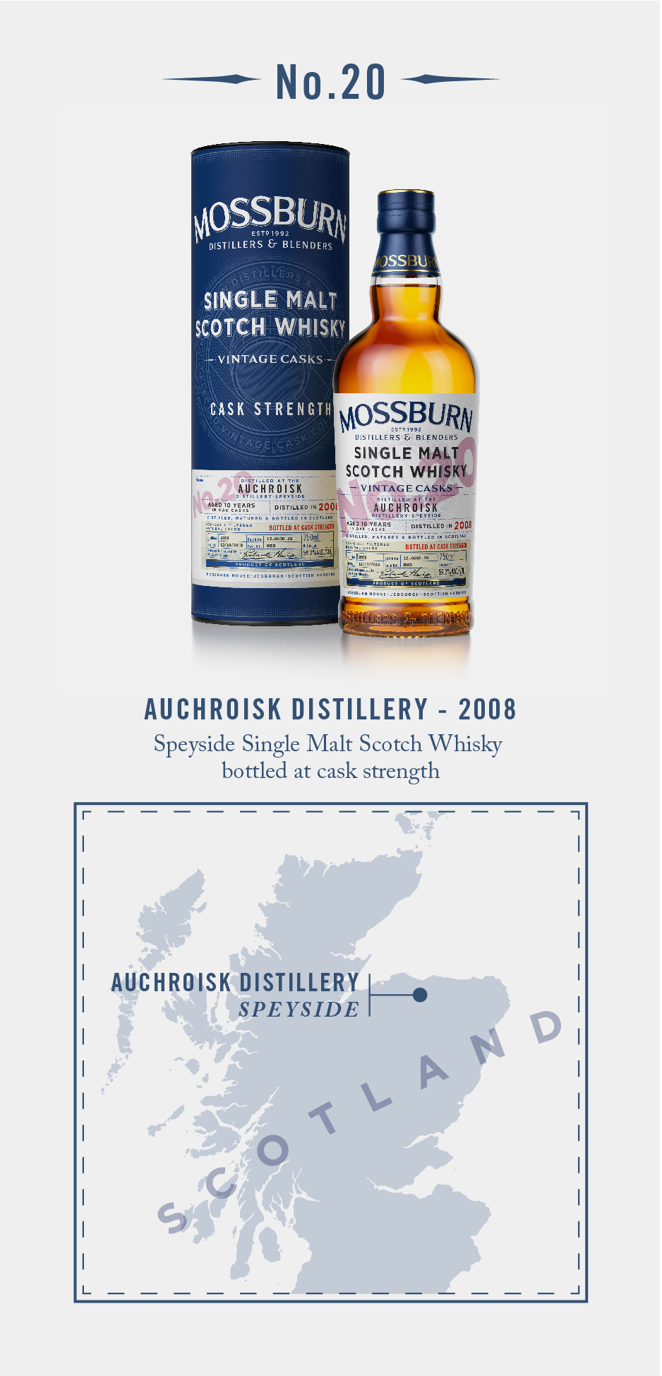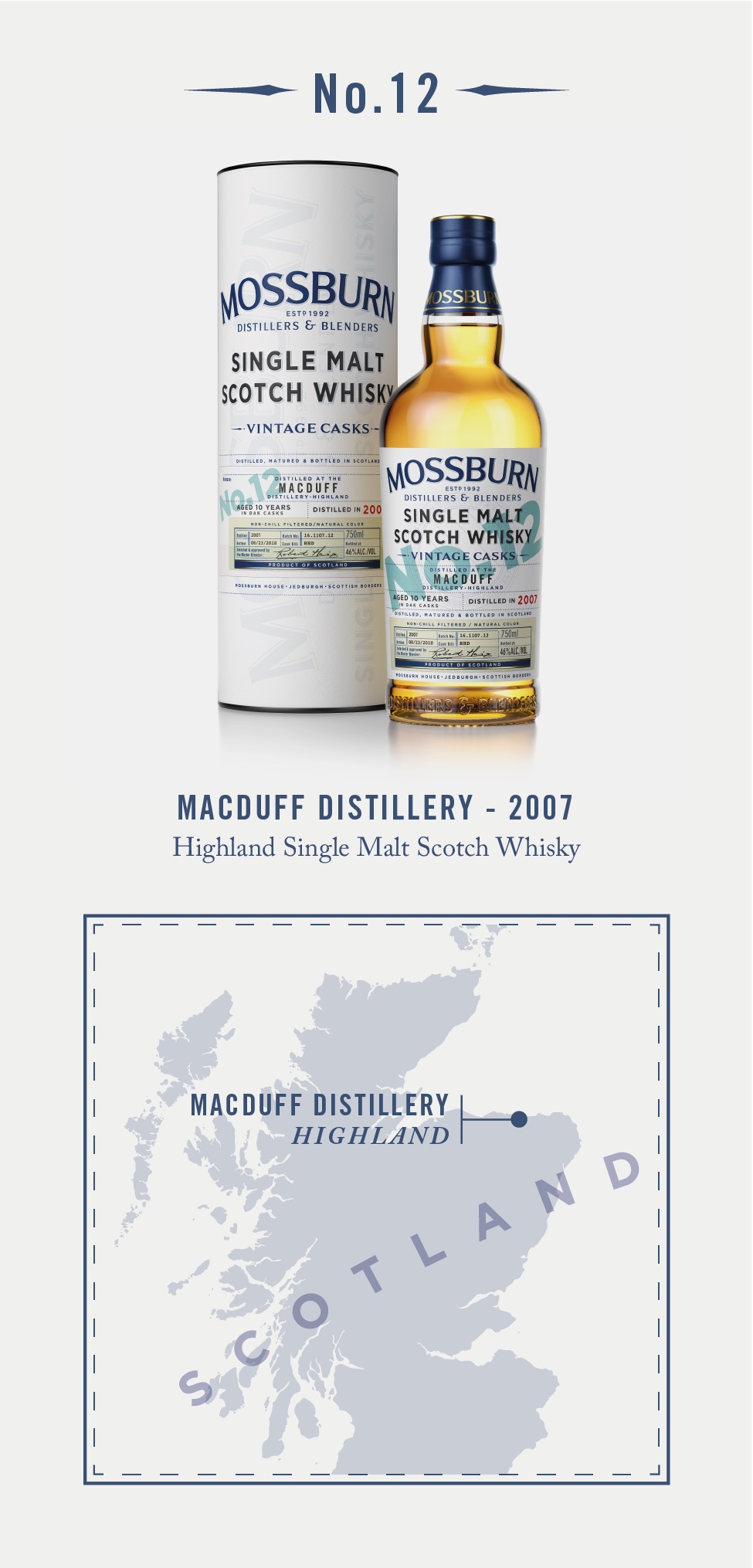 The MossburnVintage Casks range are a collection of Single Malt Scotch Whiskies each issuing from a strictly limited and select batch of casks. Each numbered release will only ever yield a finite number of bottles. While this means that we can never replicate the particular character of each of these Single Malts, it also offers an opportunity to sample what we believe to be an exceptional examples of the whisky made by some of Scotland’s most distinguished distilleries.